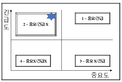 시간관리에서 보통 많이 틀리게 생각하는 부분이, 중요하며 긴급한 일을 먼저하는 것이라는 부분이다. 하지만, 실제로는 중요하며, 긴급하지 않은 일에 얼마나 자가의 시간을 할당하느냐가 시간관리의 중요 포인트입니다.